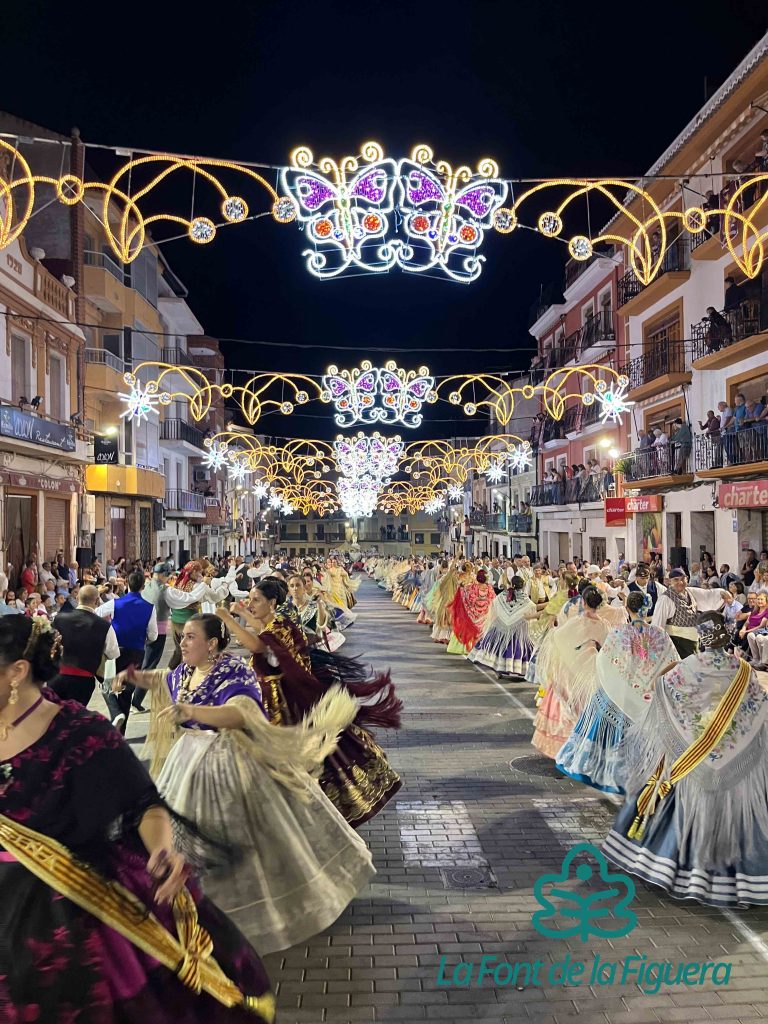 La «Dansà» no termina, estalla. Con la llegada de Les Seguidilles, el ritmo se vuelve frenético. Es un duelo de resistencia pura donde el requinto y el tabal desafían a los bailadores, acelerando el paso hasta un final trepidante que hace vibrar a toda La Font de la Figuera.